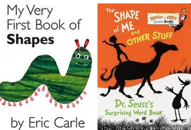 By Dr. Seuss. This book encourages children to ponder on shapes they may never have considered before through the whimsical rhymes and pictures of Dr. Seuss.